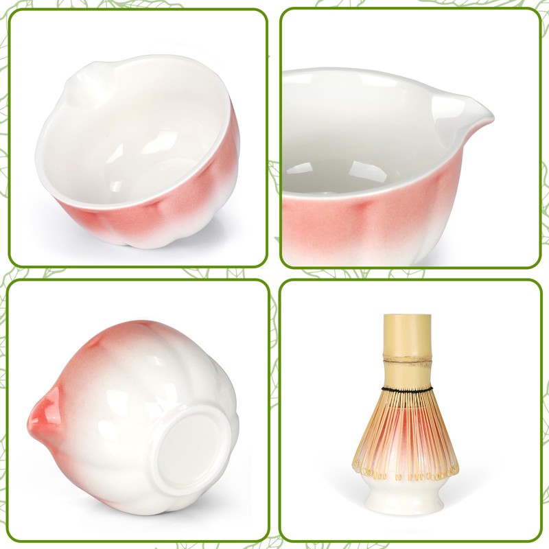 - Exquisite Cherry Blossom Petal Design: Elevate your matcha ritual with this artistically crafted ceramic set. Inspired by the delicate silhouette of sakura petals, its gradient blush-to-white glaze imbues your tea ceremony with poetic elegance. More than functional ware – it's a sculptural centerpiece that transforms daily rituals into cherished moments of tranquility
