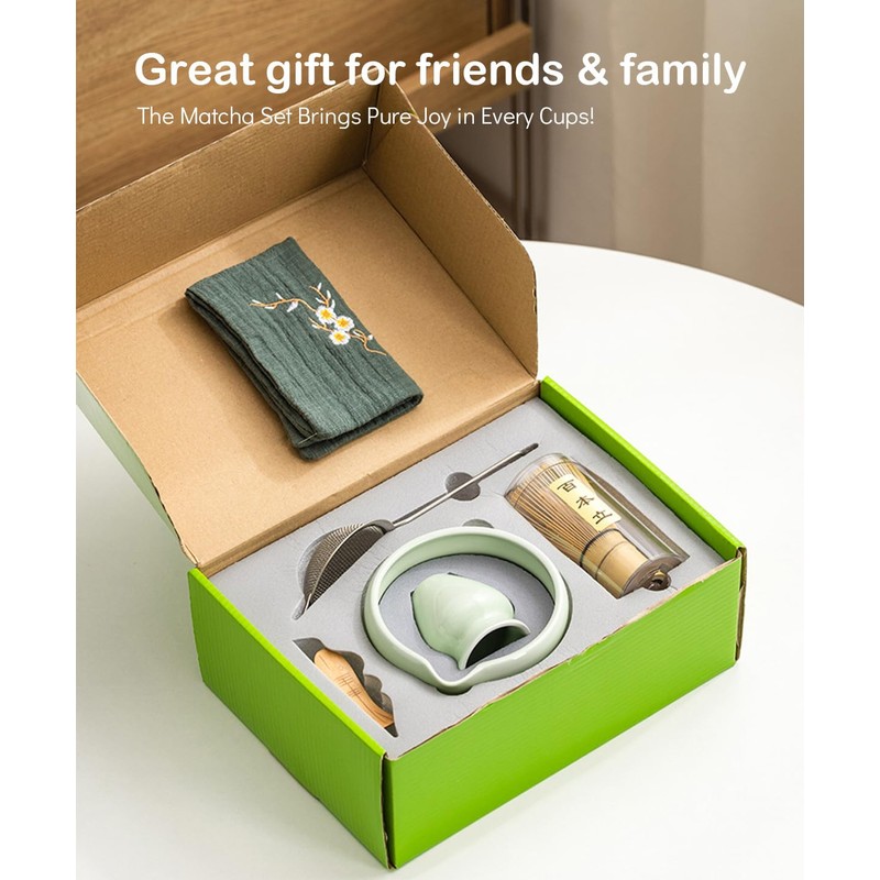 - Matcha Colour Design Aesthetics: the matcha bowl and blender stand have a uniform matcha colour. The overall design is simple and elegant and reflects the ritual character of the Japanese tea ceremony. This tool set is not only practical, but also a work of art that adds a touch of natural beauty to your tea table.