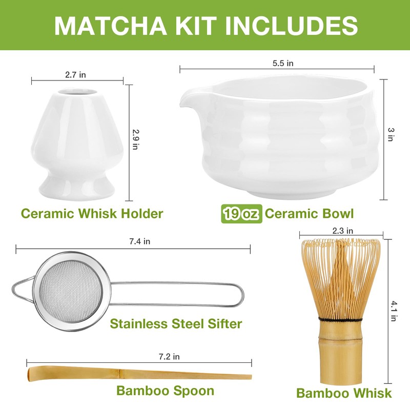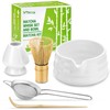 Matcha Whisk Set, Japanese Tea Set (5pcs) includes Matcha Bowl with Spout (19 oz), Bamboo Whisk and Matcha Scoop, Whisk Holder, Stainless Steel Sifter, Tea Making Tools, Matcha Kit
