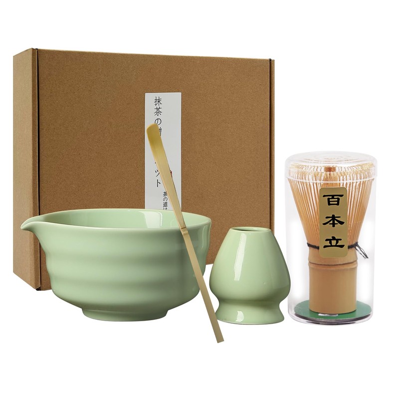 Matcha Whisk Set, Matcha Tea Set, 4PCS Elegant Kit with Ceramic Bowl, Bamboo ...
