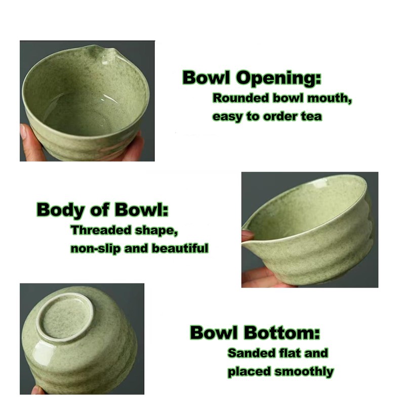 - 【Wonderful Design】: Our Matcha Bowl features a unique warped spout design that makes the flow of water silky smooth and controllable, making it easy for us to experience the tea ceremony. And it reduces unnecessary cleaning, minimizing the risk of water overflow and dirtying the operating table.
