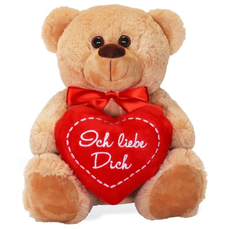 - Sugar sweet teddy bear in light brown with inscribed heart: Ich liebe Dich. A wonderful gift idea!