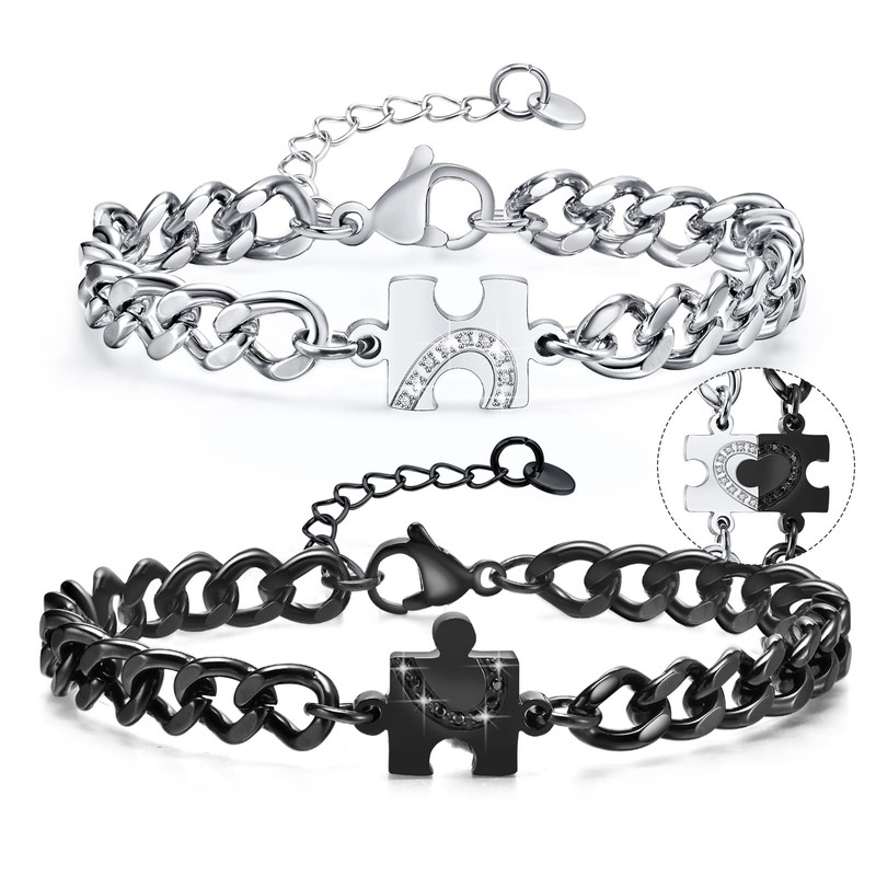 - [Couple Matching Bracelets]:These couple bracelets feature a unique puzzle-piece design. When the two bracelets come together, the puzzle pieces perfectly interlock, forming a complete heart shape.