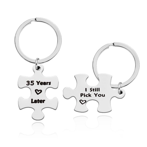 - Creative Couple Keychains for Him and Her: This couples keychain for 2 is engraved with the words "35 Years Later" and "I Still Pick You", matching couple keychains prefect as 35th anniversary gifts for women men, 35th wedding anniversary gifts for husband and wife, birthday gifts for husband who has everything, wife gifts from husband romantic