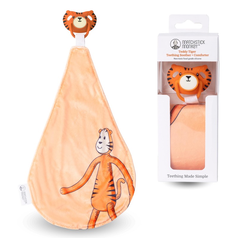 Matchstick Monkey All in One Pacifier, Teether and Comforter - Orthodontic Teat & Antimicrobial Protection, Suitable for Newborns, Teddy Tigers