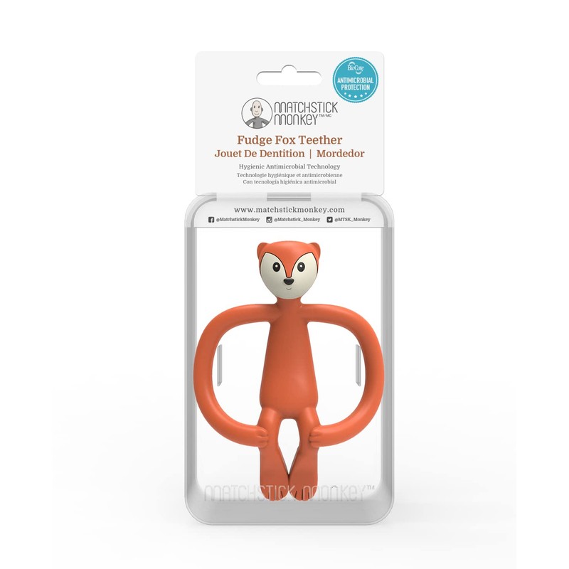 Matchstick Monkey Antimicrobial Teether / Teething Aid / Gel Applicator for Sore Gums / BPA Free / Easy to Grip / Above 3 Months / Animal (Fudge Fox)