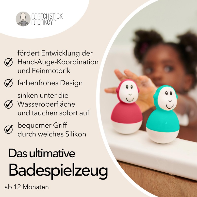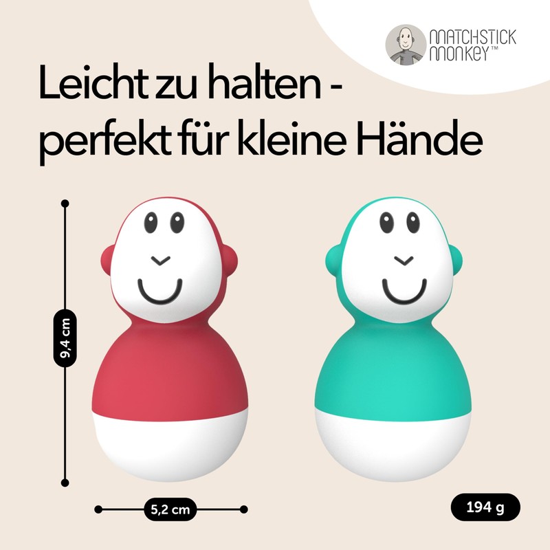 Matchstick Monkey Badezeit Baby Antimicrobial Baby Bath Toy Bath Wiggle Figures / Sensory Learning / Easy to Grip / Set of 2 / from 12 Months Green & Red
