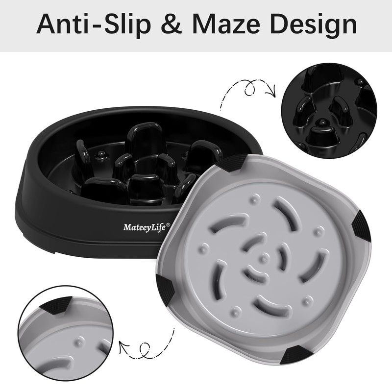 MateeyLife Small Slow Feeder Cat Bowls 2PCS, Anti-Choking Puzzle Cat Food Bowls, Anti-Slip Interactive Dog Feeding Bowls Slow Down Eating, Bloat Stop Maze Cat Dishes for Small Breeds 1 Cup Gray&Black