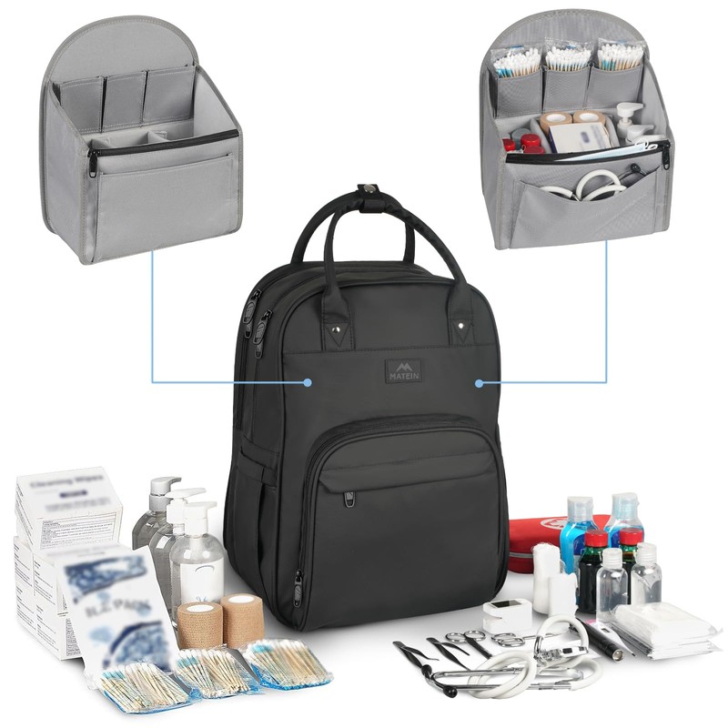 MATEIN Nurse Backpack, Waterproof Padded Medical Nursing Laptop Backpacks for Women, Home Health Clinical Tote Bag with Removable Organizer for College Work Travel, Nurses Gifts