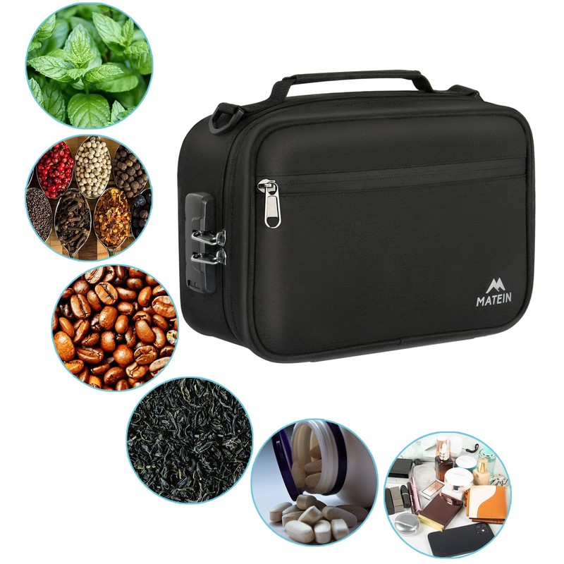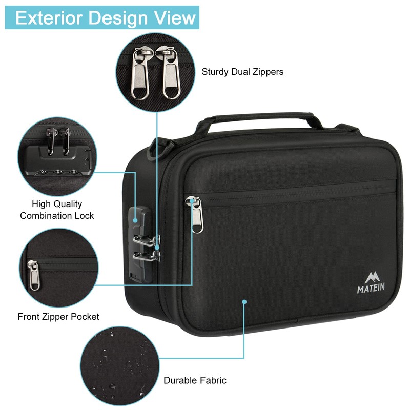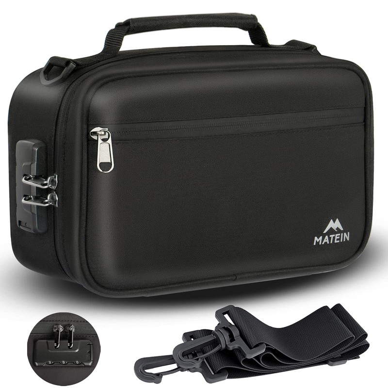MATEIN Smell Proof Bag, Odor Proof Bags Stash Box Container with Combination Lock, Travel Storage Case with Detachable Shoulder Strap, Scent Proof Bag Gifts for Men & Women, Black
