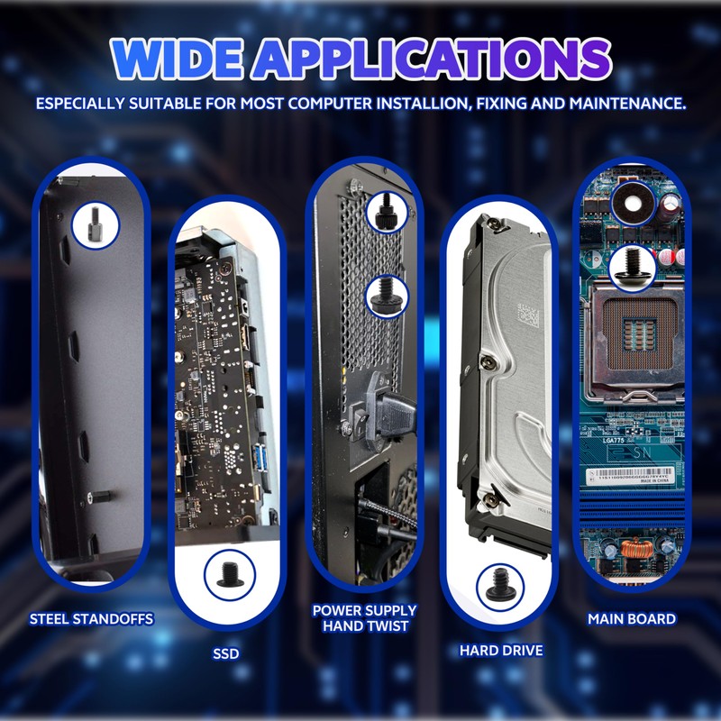 - Widely Applications:Perfect for PC case, power supply, motherboard, hard drives, fan and floppy/CD-ROM/DVD-ROM drives fixed installation