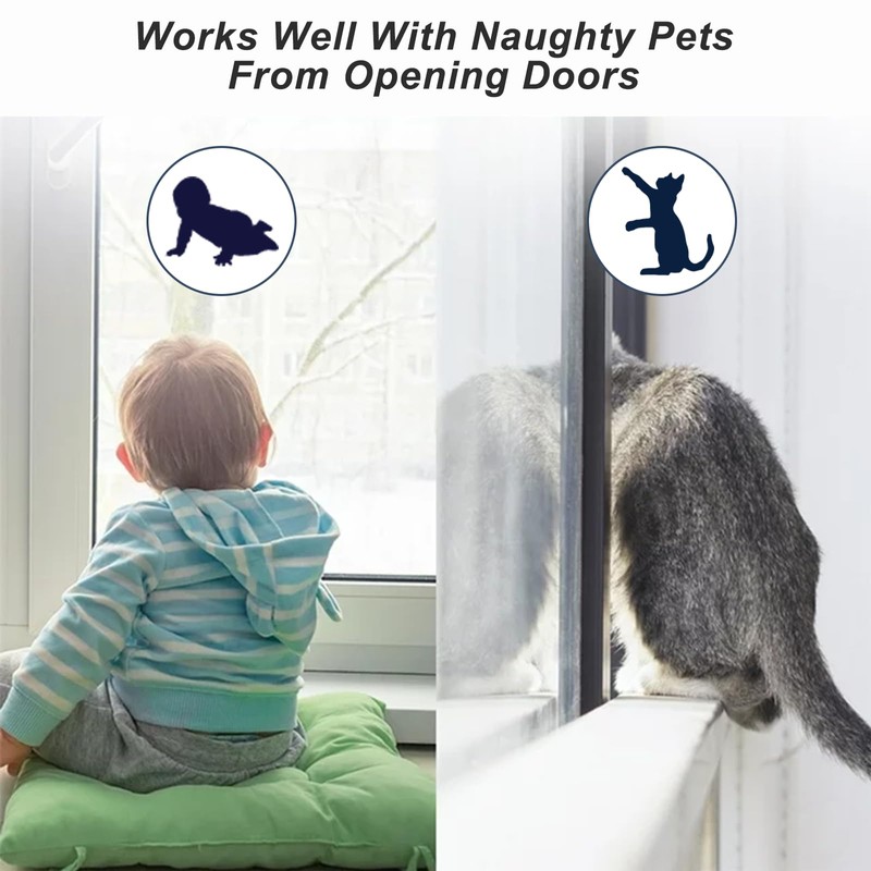 - 【Protect Children and Pets】A must-have item to keep toddlers and puppies out of unwanted areas! Especially suitable for the front door, pantry, basement, and doors near the garage, pool, stairs, etc. Easy to install and use, extremely sturdy, safe material, hard to be figured out.