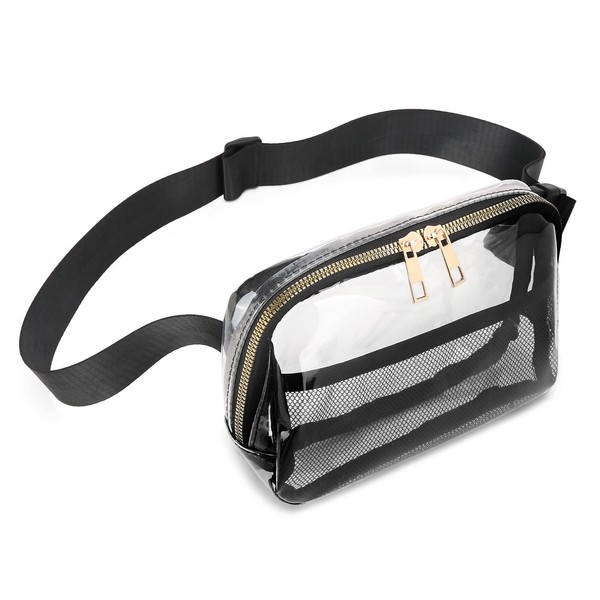 MATEPROX Clear Fanny Pack for Women Men, Crossbody Bag Stadium Approved Transparent Waist Bag with Adjustable Strap for Sports, Travel, Beach, Events-Black