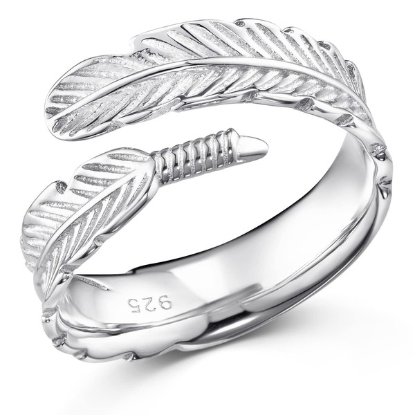 MATERIA by Matthias Wagner 925 Silver Ring Feather Silver Women's Ring Open Size 51-60 Size Adjustable + Box SR-90, Silver