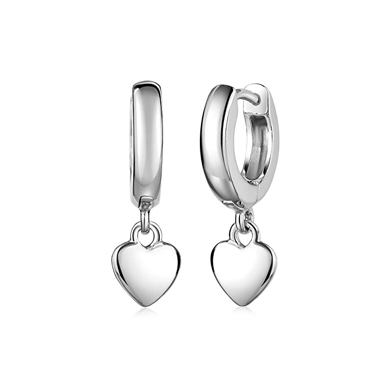 Magical small hoop earrings with movable heart pendants. Made from high-quality 925 sterling silver, the earrings have also been either rhodium-plated or gold-plated with yellow gold and are therefore protected from tarnishing. Thanks to the folding mechanism, they can be quickly and easily attached to the ears and cannot be lost.