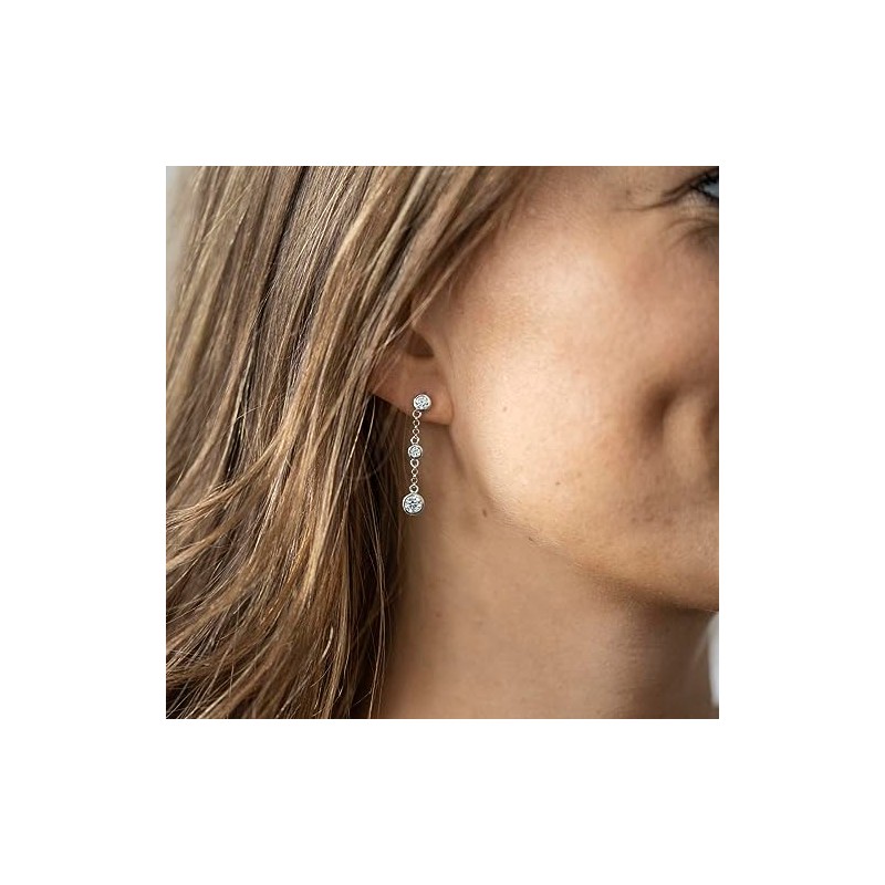 - Dimensions of each earring (H x W): 31 x 5.5 mm, diameter zirconia: 3.5 mm, 2.5 mm and 4.5 mm, weight: 1.2 g each