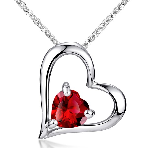 MATERIA by Matthias Wagner Women's Necklace Pendant Heart Silver 925 Gemstone Pendant with Chain 45 cm, Sterling Silver Gemstone, Garnet