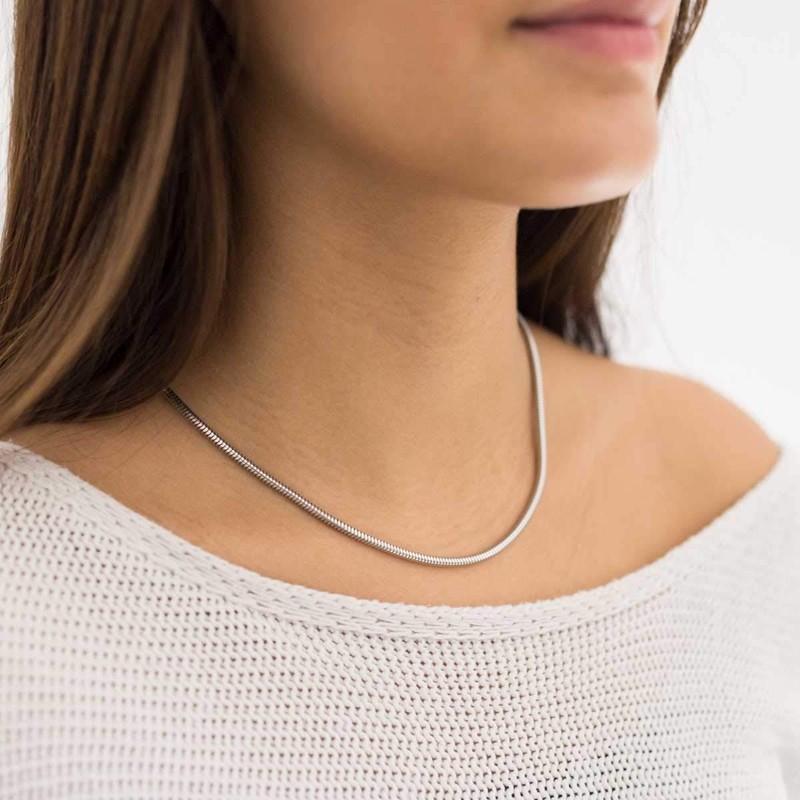 Materia #K28 Women's Snake Chain Necklace 925 Sterling Silver 3 mm Rhodium-Plated in 40 42 45 50 55 60 70 cm, Sterling Silver