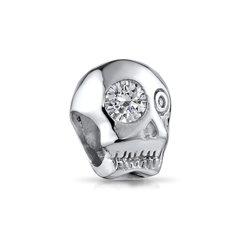 Our sparkling skull bead gives expressive radiance. Rhodium-plated 925 sterling silver with 2 sparkling eye sockets, set with different sized white zirconia, give this piece of jewellery an unusual appearance. Whether as a pendant on the charm bracelet, as a necklace pendant or quite unusual as a beard jewellery for self-confident men - this charm combines a classic gothic motif with extravagant design ideas. The silver bead is suitable for all standard bead bracelets up to max. 4 mm thickness and therefore compatible with almost all models / brands of well-known manufacturers.