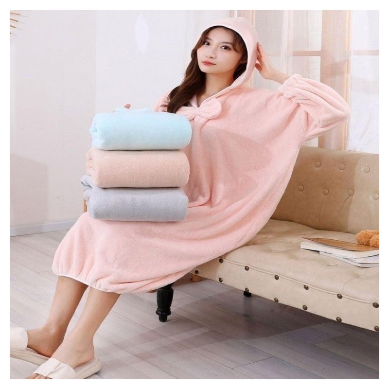 Material gown dress shower gown towel bath hood type Soft gray/FREE