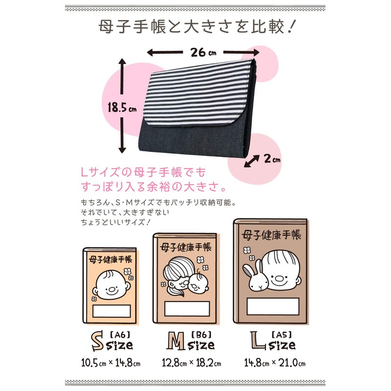 Maternal and Child Notebook Case, Bellows [Wide Opens for Easy Removal] Large for Two Multiple Cases (Border x Denim)