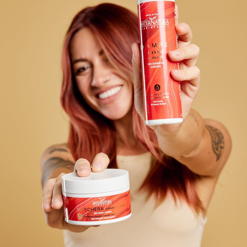 Maternatura Cherry Red Mask: tinting mask, ideal for red and copper shades, moisturizing, organic beauty routine for red hair, Made in Italy - 200 ml