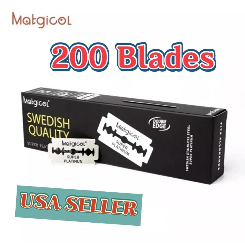 200 Matgicol Platinum Ultra Sharp Double Edge Cut Throat Barber Razor Blades.
