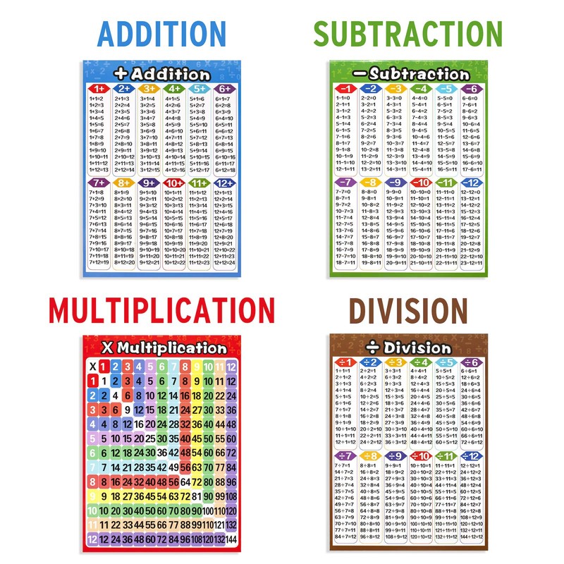 - 【13 Different Posters-Standard】Addition, Subtraction, Multiplication, Division, Numbers, Roman Numerals, Place Value, Fractions, Math Keywords, Money, Time, 2D&3D Shapes,Types of Graphs.