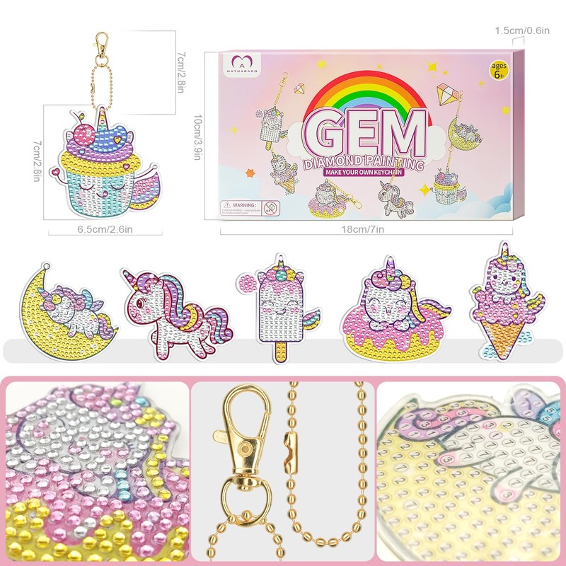 MATHARAGO MATHARAGO Diamond Art for Kids 6 Pcs DIY Diamond Painting Keyrings Set, Painting by Number Gem Keychains Craft Kits for Kids Ages 6-12, Gifts for Birthday, Back to School(DJS-02)