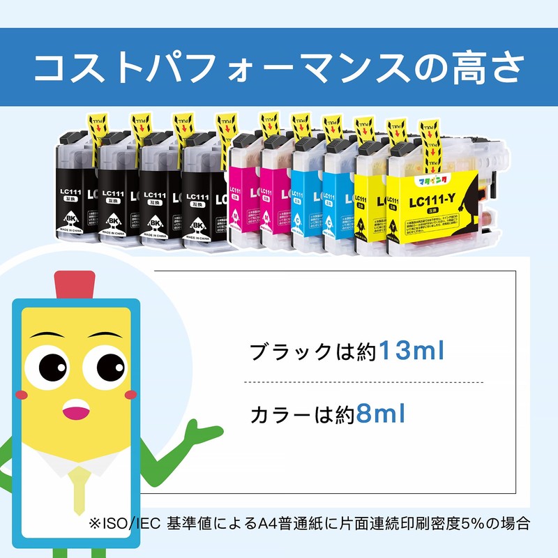 Matink LC111 Compatible Ink Cartridge, Compatible with Brother Compatible Ink, Set of 10 (4 Color Set x 2 + 2 Black), Large Capacity, Remaining Indication, Individual Packaging, Extra Quantity