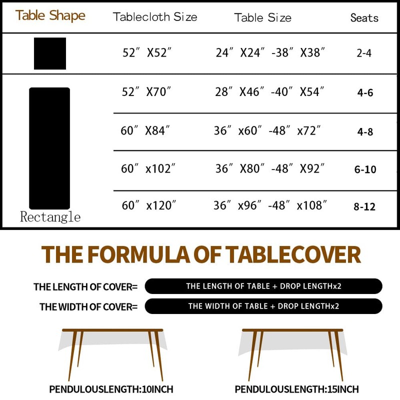 - Easy to Care:These rectangle tablecloths are spill-proof that liquids bead up for easy cleaning. Machine-wash cold, gentle cycle.Tumble-dry low.Cool iron as needed,do not bleach.