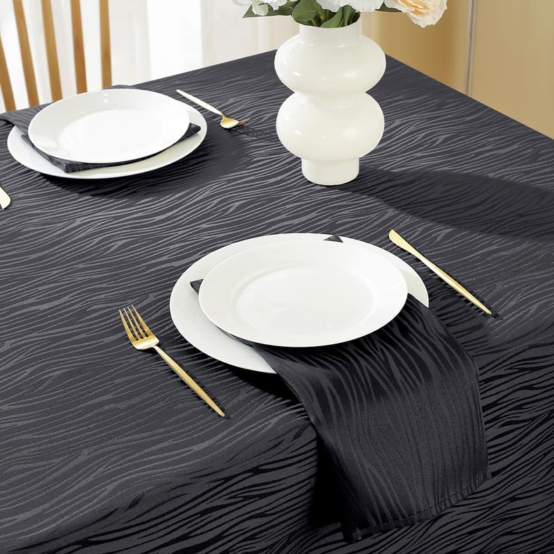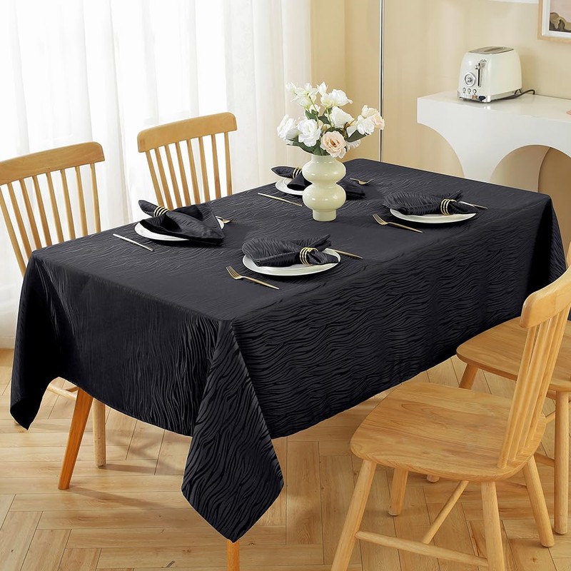 MATIRUG Black Jacquard Tablecloth, Textured Spillproof Wrinkle Free Soft Table Cloth for Halloween Kitchen Dinning Tabletop Outdoor Picnic, Rectangle 52 x 70 Inch