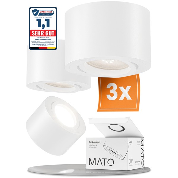 MATO 3x LED Surface-Mounted Spotlights White - Extra Flat & Swivelling - Diameter 80 x 50 mm - Surface-Mounted Ceiling Spotlight Including 5 W LED Module 230 V - 3000 K Warm White - Ceiling