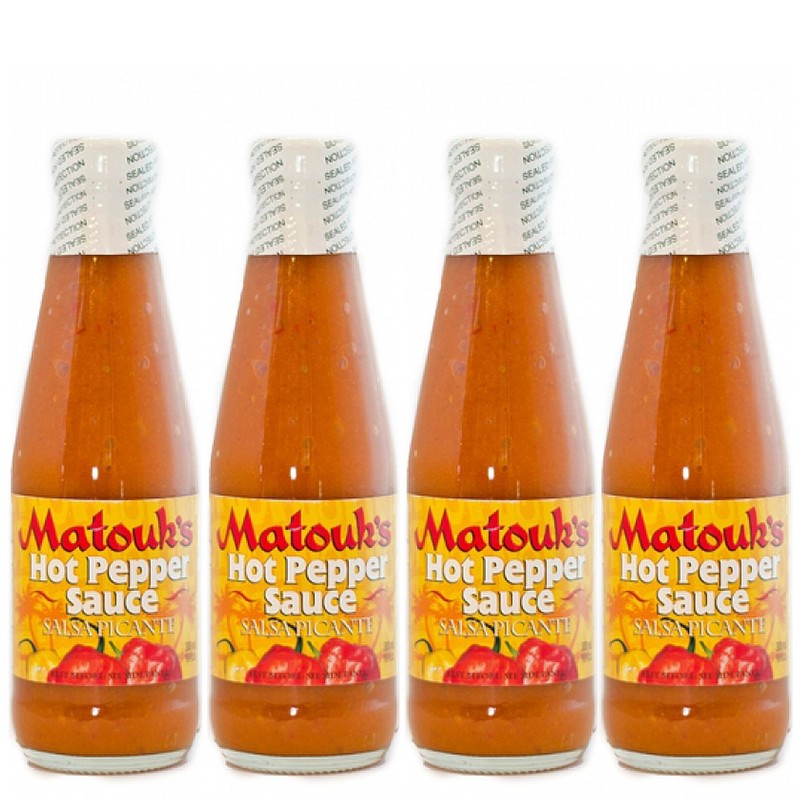 - 4 pack of Matouk's Hot Pepper Sauce 10 Ounces each, total of 40 ounces
