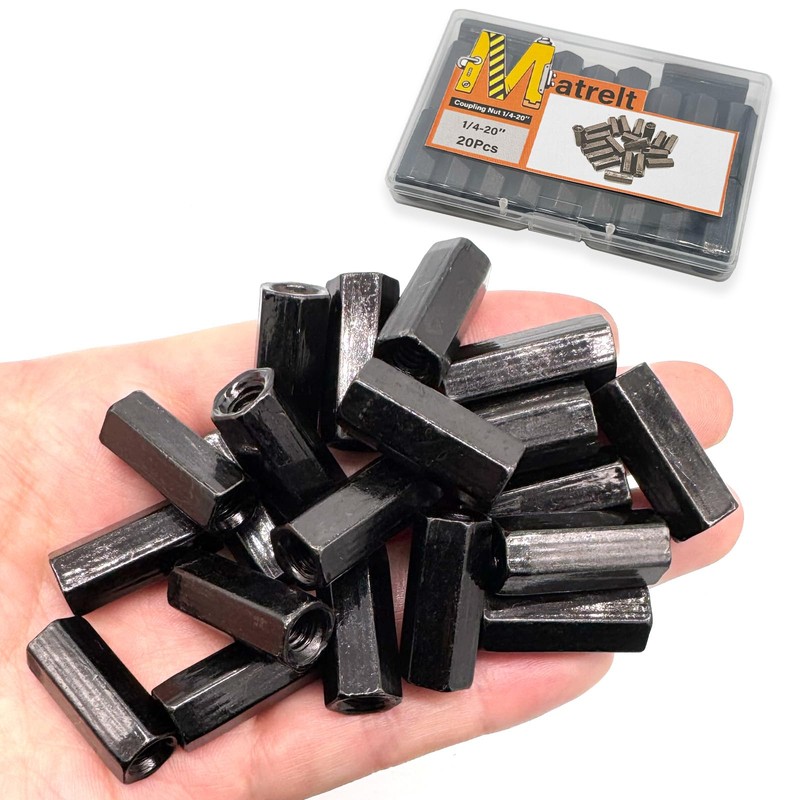 - 【Size and Package】:20pcs 1/4"-20 Black Hexagon Rod Coupling Nuts. Length:25.4mm/1inch, Outer Diameter:10.1mm/0.4 inch, Thread:1/4"-20.Coupling nut are packaged in plastic box, convenient storage and use