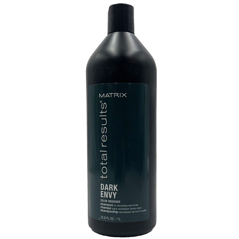 The Matrix Dark Envy Shampoo in a 33.8 fl.oz size is a product designed specifically for those with dark hair, especially brunettes or those with color-treated dark hair. This shampoo is formulated to enhance and maintain the richness and depth of dark hair colors. It helps to neutralize red undertones and prevent brassiness, keeping your dark hair looking vibrant and fresh. Additionally, it cleanses the hair gently without stripping away color or natural oils, leaving your hair feeling clean, soft, and nourished. If you're looking to preserve the intensity and richness of your dark hair color, the Matrix Dark Envy Shampoo could be a great addition to your hair care routine.