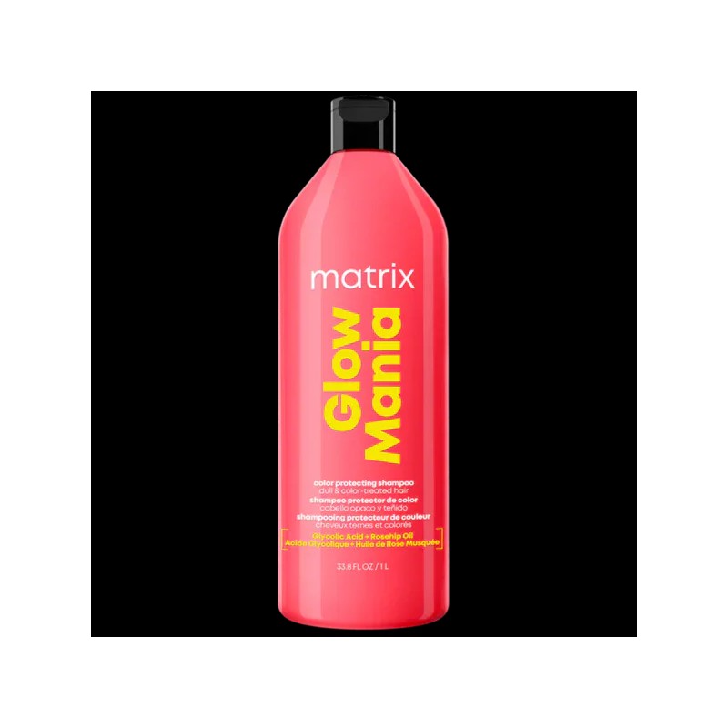 Matrix Glow Mania Colour Protecting Shampoo is a gentle, suede-laminating cleanser that keeps colour-treated hair vibrant and glossy. Formulated with glycolic acid and rosehip oil, it protects hair colour for up to 8 weeks while adding shine.