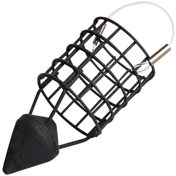 Matrix Horizon Wire Cage Feeder Small, Designed for accurate casting at range. Conical bottom weight provides ultra-aerodynamic shape. Gap between weight and cage allows large particles to release. Carbonsteel wire mesh for increased durability. Super tough matt black textured coating. Weights from 20g to 50g.