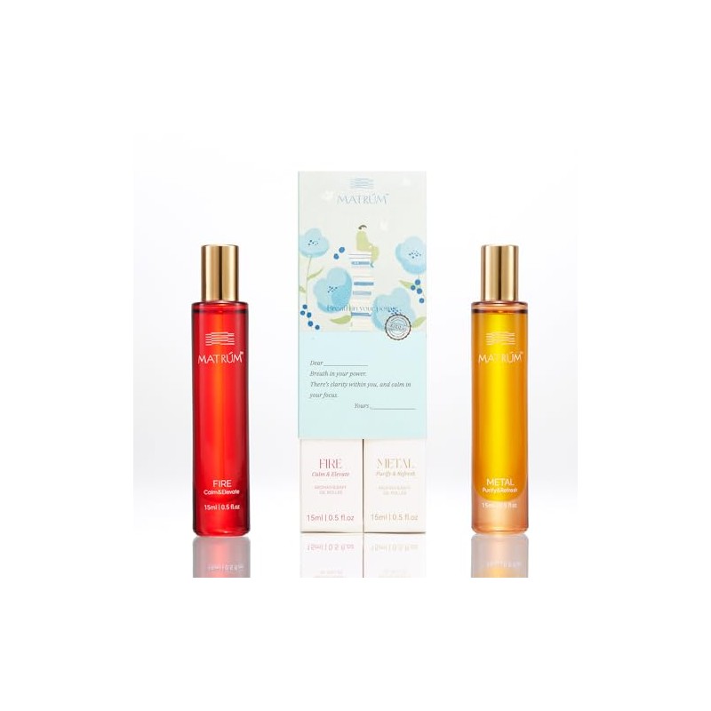 MATRÚM Fire + Metal Essential Oil Roller Set – Botanical Skincare & Focus Blend Duo – Aromatherapy for Hydration, Energy & Daily Reset Rituals – 0.5 Fl Oz (Pack of 2)