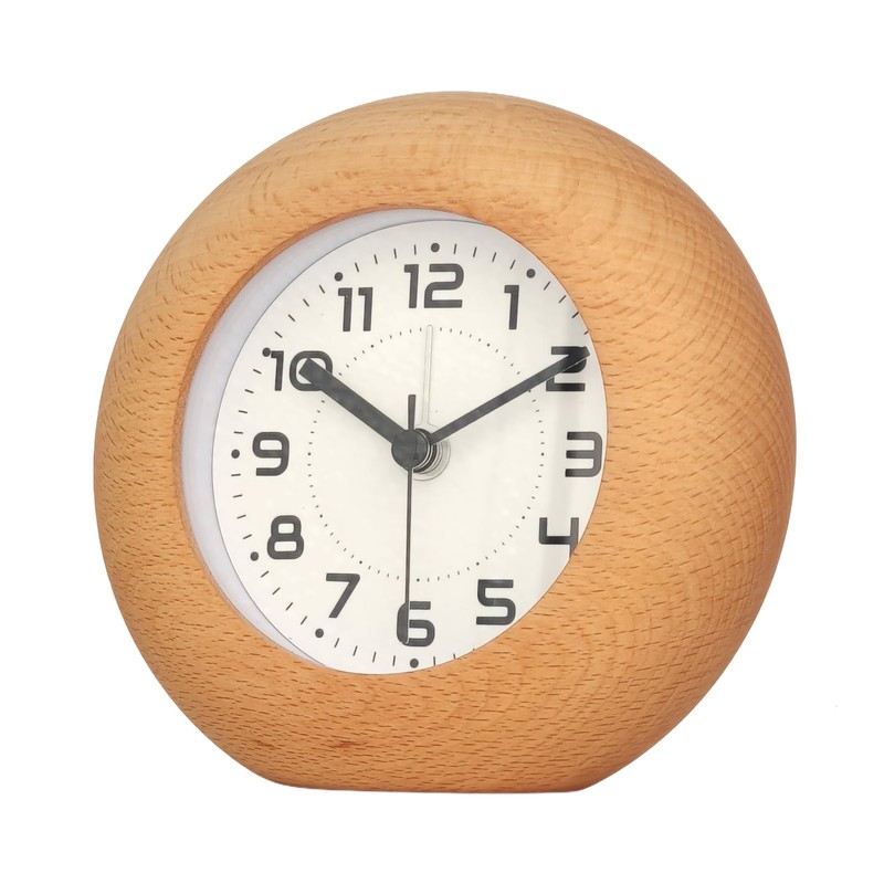 Matsuraku 目覚まし時計 木製 置き時計 静音 卓上 無垢材 手作り スヌーズ付き 連続秒針 電池式 モダン 小型 かわいい (CM30L)