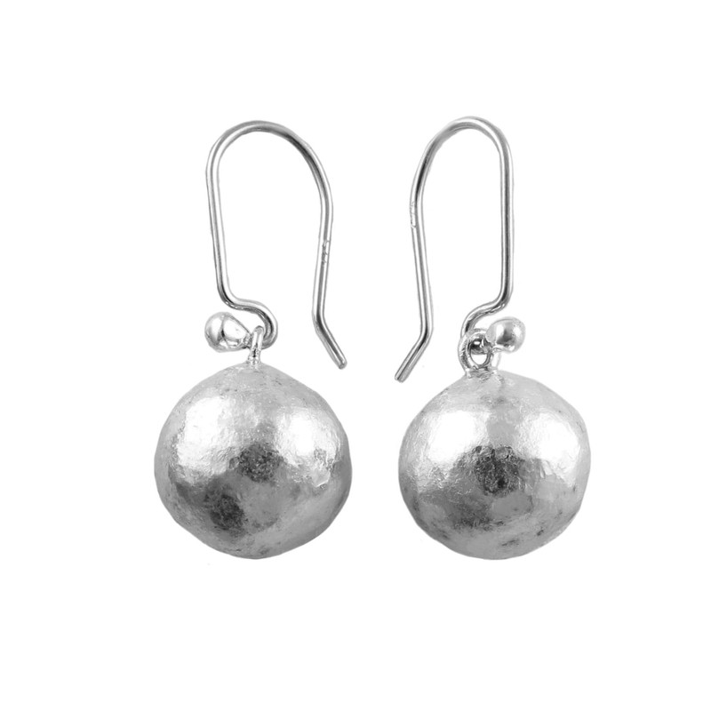 This modernist design features silver ball beads dangling prettily on extra long hooks. The surface of the balls have a textured matt finish. The earrings are supplied in a gift box.