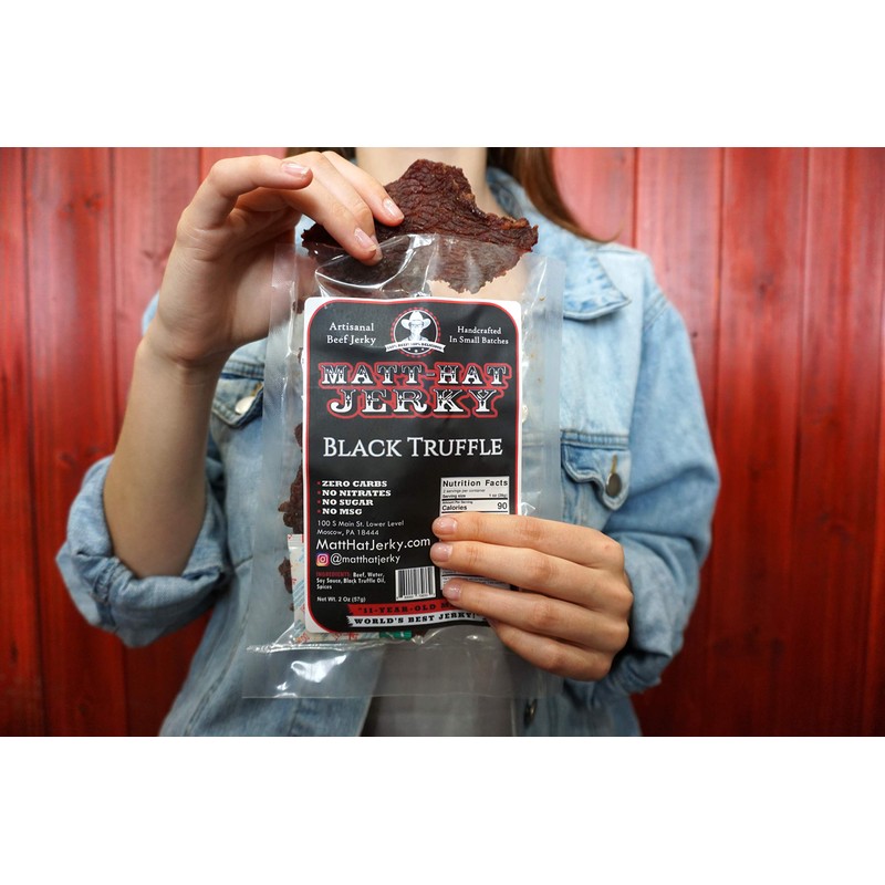 Matt-Hat Black Truffle Artisanal Beef Jerky made with Soy Sauce, Black Truffle Oil & Premium Beef - Low Carb & Gluten Free with No Added Sugar, Nitrates or MSG 2 oz. Bags