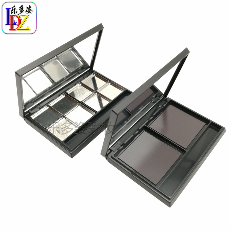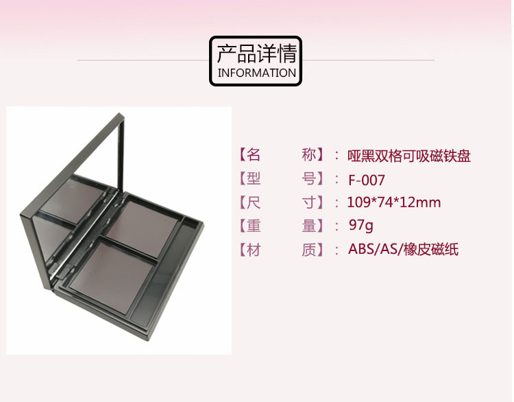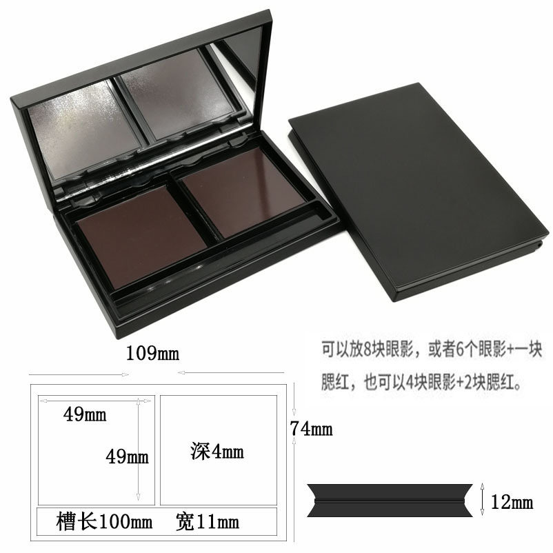 Matte Black Double Grid Empty Magnetic Eyeshadow Palette DIY Makeup Pan Case + Empty Pans 4ea