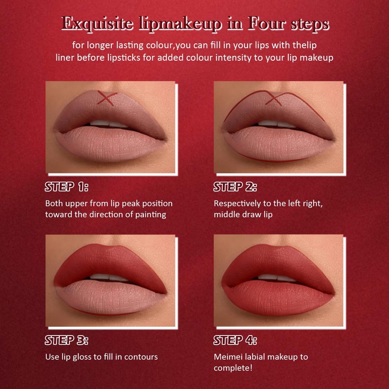 - How to use: Step 1: Edge the lips with a lip liner and then wipe the lip liner to cover 1/3 of the lips. Step 2: Fill the remaining 2/3 of the lips with a matte lipstick for a bold, full lip look. So you can sketch a charming and delicate lip look anytime and anywhere.