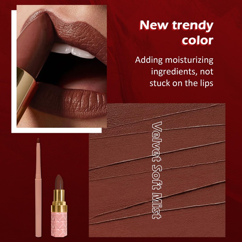 Matte Lip Liner and Lipstick Set - 2 Pieces Lip Liner + Lipstick Makeup Set, Velvet Lipstick Matte Waterproof Lip Gloss, Quick-Drying Non-Stick Cup, Long Lasting Lip Gloss, Lip Makeup Kit Birthday, Valentine's Day or Other Festivals Gift for Women