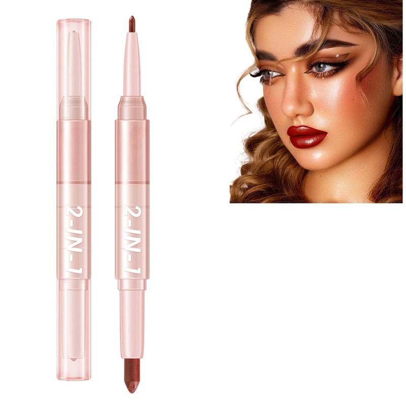 Matte Lipstick Lip Liner Pencil,Double-ended 2-in-1 Waterproof Lipstick Lip Liner,Waterproof Lipliner Pencil,Smooth and Long-Lasting Makeup Lip Pencil,Creamy Matte Velvet Lip Liner Pencil for Women
