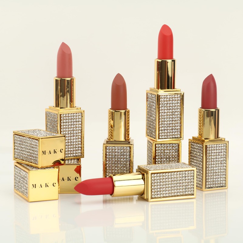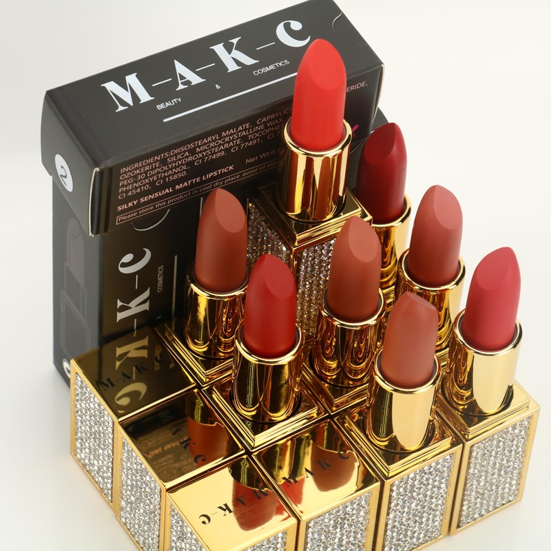 Matte Lipstick with Gold Package By M - A - K - C Beauty and Cosmetics.(Velvet Lip stick Gift Box) Waterproof Non-Stick Cup Long Lasting Retractable. (#13 Dark Red, One Size)