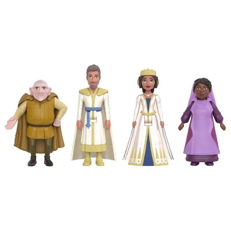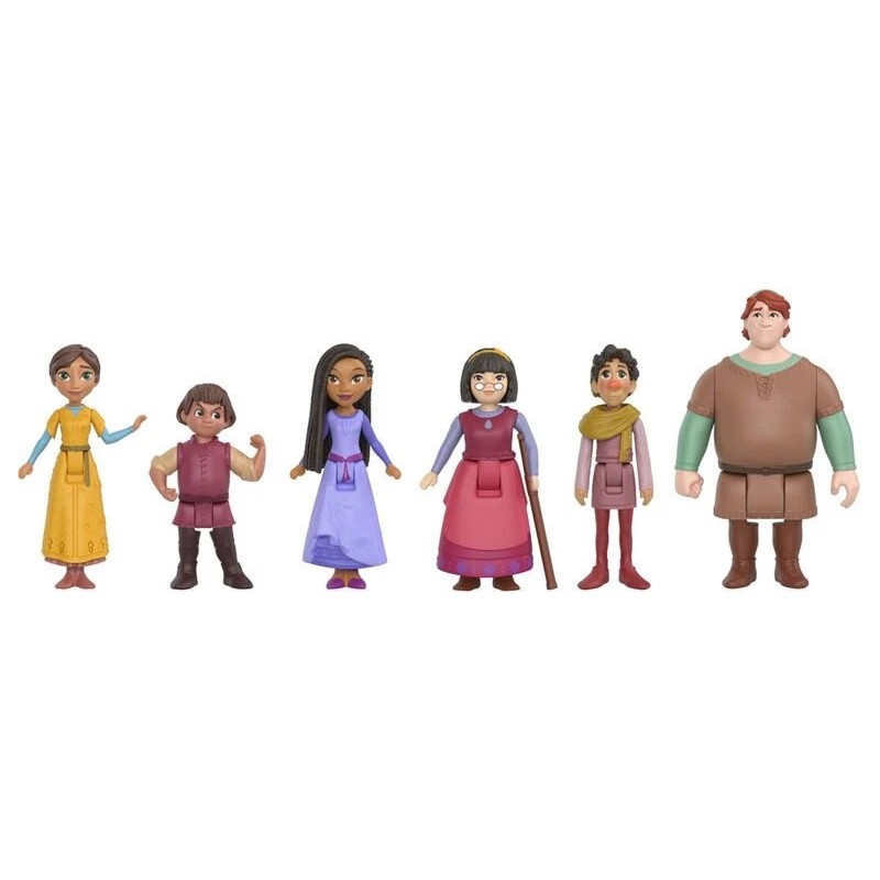 The kingdom is coming together with Disney's Wish Kingdom of Rosas Character Set! Inspired by the animated musical, the set includes 10 fan-favorite characters: Asha of Rosas, Dahlia, Queen Amaya, King Magnifico, Sabino, Sakina, Safi, Bazeema, Gabo, Simon, Star, and Valentino the Goat! With three additional animal friends, it's an instant collection kids ages 3 years and older can use to play and display their own adventures in the kingdom of Rosas! Dolls cannot stand alone. Colors and decorations may vary.