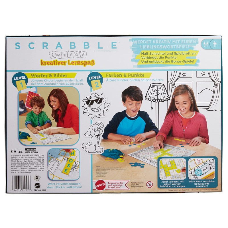 - The Scrabble Junior Creative Learning Game offers two games in one. It grows together with children's vocabulary and spelling.