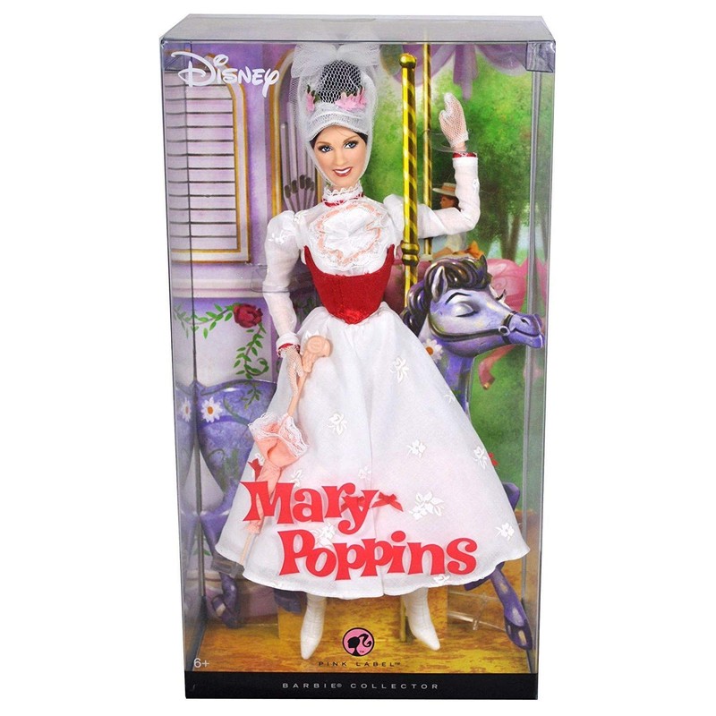 This doll celebrates the favorite classic film Mary Poppins dressed in a re- creation of an iconic ensemble from the carousel scene. With a face sculpt created in the likeness of Julie Andrews, a charming costume including dress, hat, umbrella, and delightful ''lace up'' boots, Mary Poppins looks simply ''supercalifragilisticexpialidocious!''. For ages 6 and over.